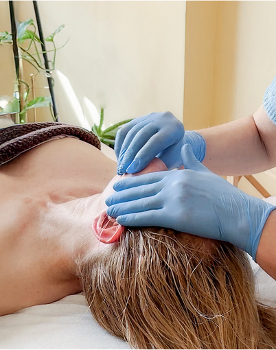 Regulujemy napięcia w głębokich warstwach mięśni i powięzi twarzy.